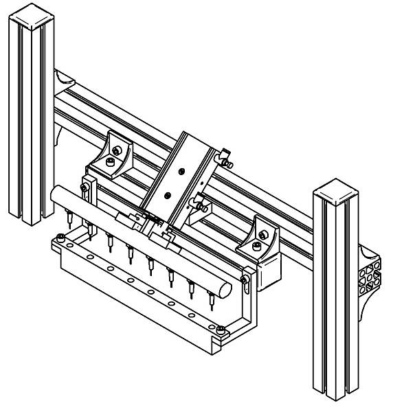 雖然明列許多仿製的缺點,老闆仍執意要仿製,而且為了省錢機構還要更簡化。他也知道播種針的引導軌道會出問題,所以要求捨棄軌道改成氣壓缸不靠軌道直接進退。移走打孔機構的建議則完全被否決,最後完成的原型機如下圖