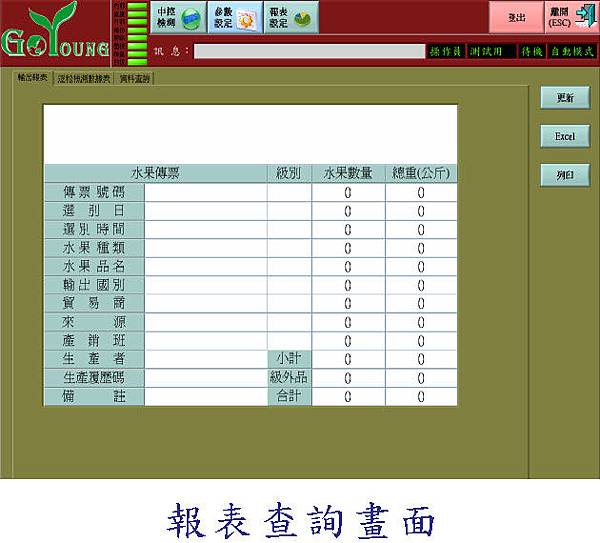 3.水果大小顆的影響,對於這一點已在程式中套用李先生給的光學距離計算修正公式,在這次驗收中有起到改善作用,但還不夠理想。在檢視中控電腦印出的報表後,不合格的水果幾乎都是很大或很小