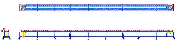 按照老闆的意見這個分級機要能大小水果通吃,速度可以調整,分級要能分10級以上。最後設計出來的是全長超過10公尺的龐然大物,因為最大要能承受鳳梨的重量,托盤下的連桿結構全是鋼板架構