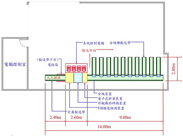 分級的標準這時才討論但很籠統,台X規格宣傳分級標準可以參數設定,但糖度、色澤加重量的組合變化最少幾十種,沒有訂出一個範圍程式要如何去寫?量完尺寸回到公司,光是安裝機器的平面示意圖和分級的示意圖就改了不知道多少版本才定案