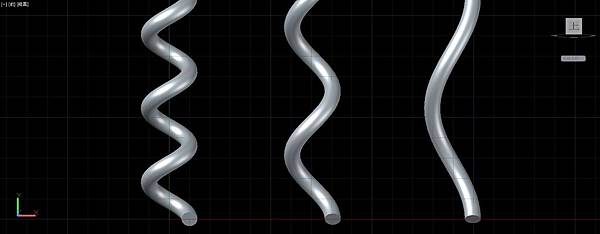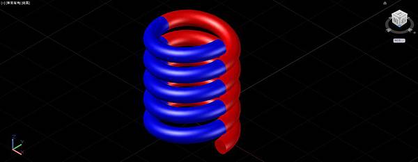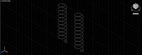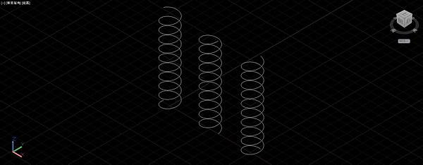 最右邊螺旋是指定UCS座標為繞Z軸轉90度方向後建立的,注意一下螺旋線下方起點,是準確的落在轉向X軸的0度方向,也就是原先世界座標X軸的90度方向