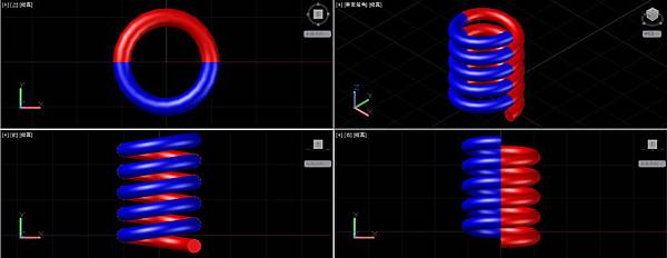 笨一點的方法是個別建立3D半圈的環形,再連接成完整的3D彈簧或螺旋