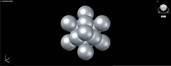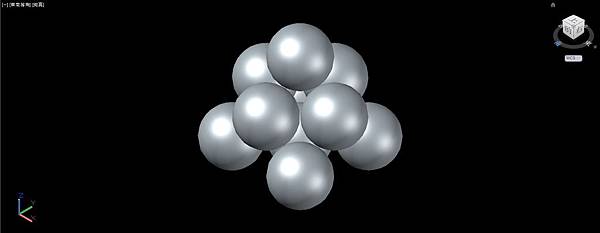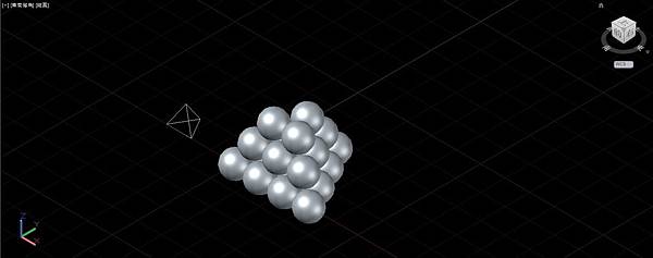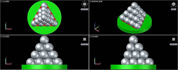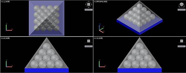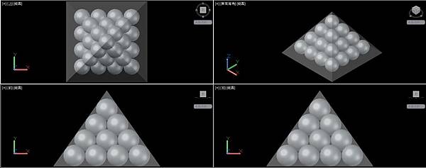 依照正4面體堆疊的要領,以線框為輔助複製圓球成金字塔形。完成後可以刪除輔助線框