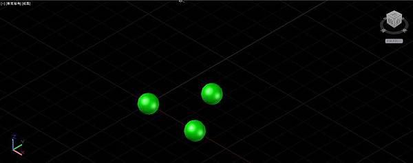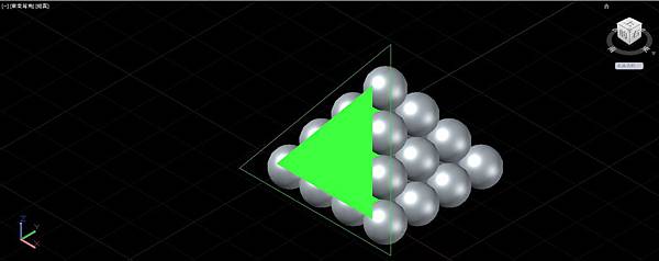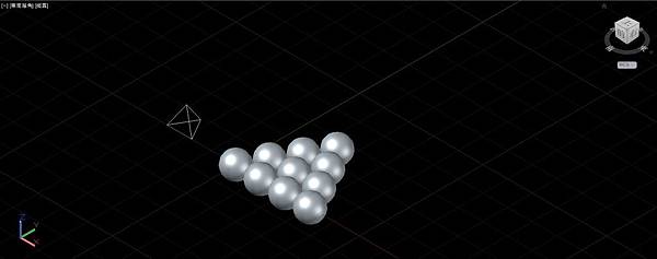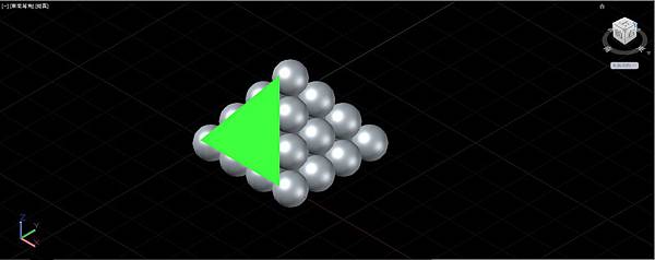 使用複製指令以旁邊的正4面體線框底邊的左下端點為基準點,底邊其他2角的端點為第2點,連續複製圓球成為由10顆球構成的正三角形排列