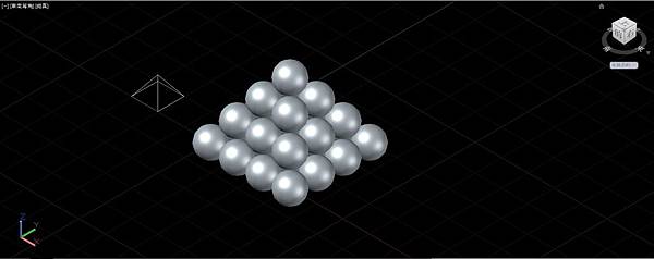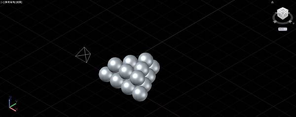 先來看有明確座標角度可以輸入的方法,書中是以正方盒中堆疊的圓球為範例,UCS使用世界座標