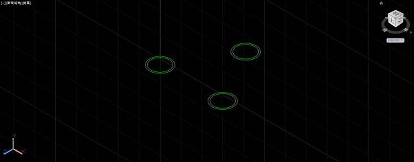 首先畫1個直徑為10的3D圓球,使用複製指令以球心為基準點,輸入@10<45,在45度方向複製出圓球