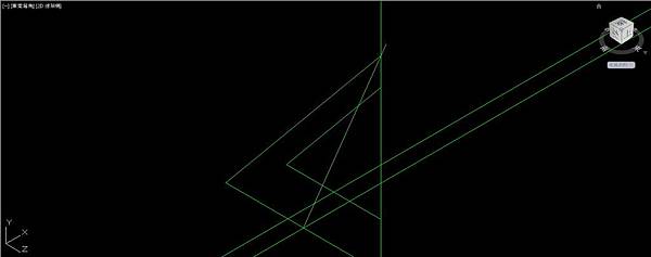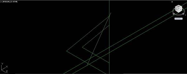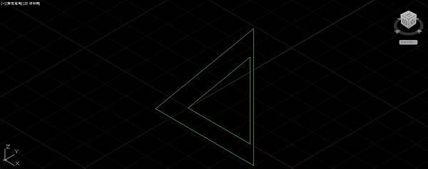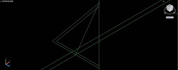 UCS座標切換成右視圖方向;通過內側三角形頂點畫垂直的建構線,通過內側三角形的底邊中點畫水平的建構線,使用偏移指令把水平建構線往下偏移距離5。通過外側三角形頂點畫直線,垂直於外側三角形底邊,再延伸到最底下的建構線。這條直線分別在垂直及水平建構線上各有一個交點