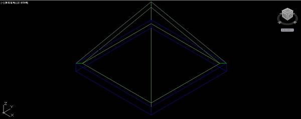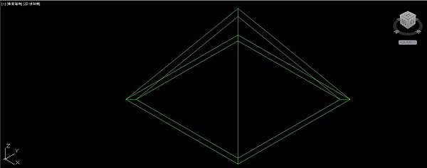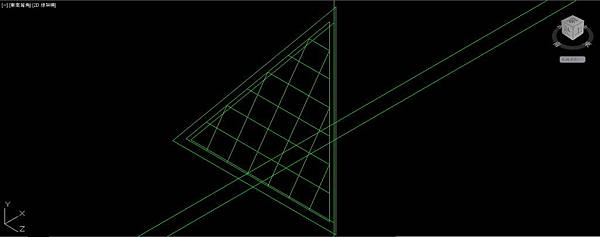 接下來先把畫面轉成"2D線架構"顯示比較好操作;關閉圓球圖層,刪除平行面,只保留偏移後的聚合線外框