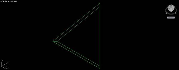 回到完成罩子第1個面的步驟開始,先刪除內側的三角形,和通過外側三角形平面的那條直線,把外側三角形原地複製一份,把複製的那份轉成面域。使用"曲面偏移"指令,把面域偏移距離2,建立平行面。預計建立厚度為2的罩子