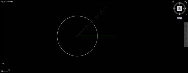 以圓心為起點,分別畫0度和45度的輔助線,線長度大於圓半徑