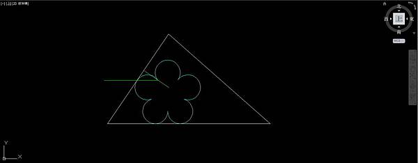 以輔助線和圓弧交點為基準點,水平輔助線和三角形40邊交點為第2點,把5個圓弧往左移動,使左上角圓弧和三角形40邊相切